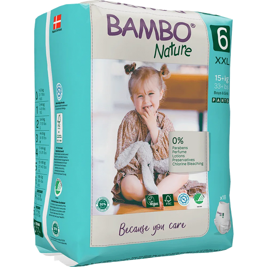Bambo Nature Pants reprezintă soluția perfectă pentru părinții care încearcă să-și deprindă copilul cu rutina zilnică de folosire a oliței. Scutecele chilot se îmbracă /dezbracă cu ușurință, la fel ca lenjeria intimă obișnuită. Chiloțeii oferă siguranță și confort, chiar și în cazul eventualelor „mici accidente”.